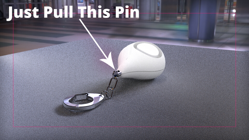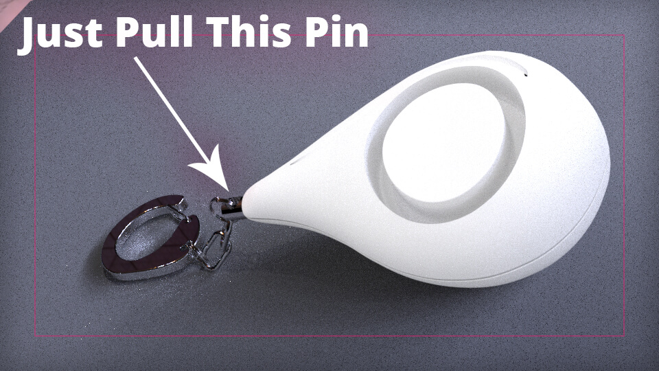 Pull the pin as shown in the pictures below. Scream Safe will scream – drawing attention from passersby and scaring attackers away.
